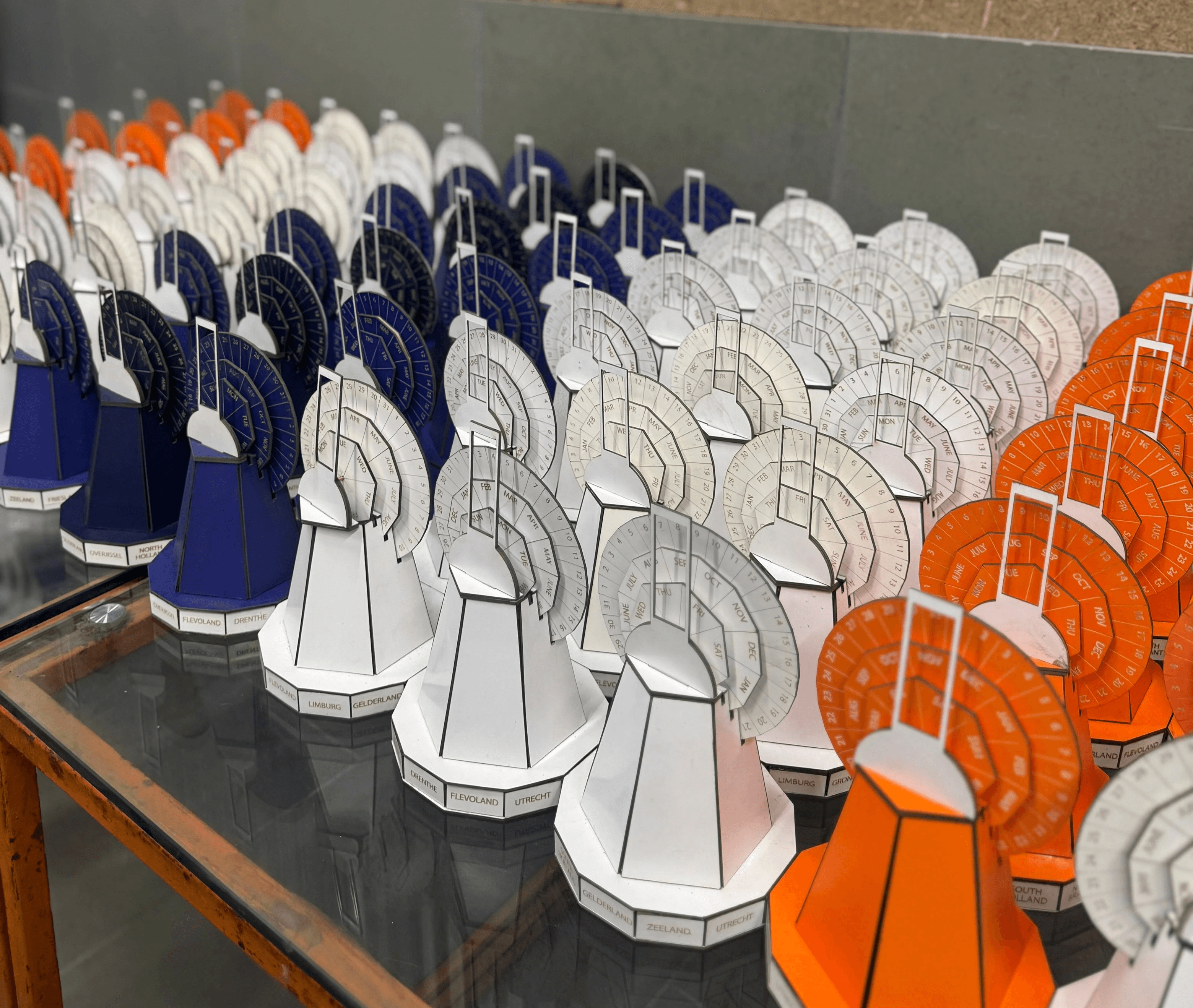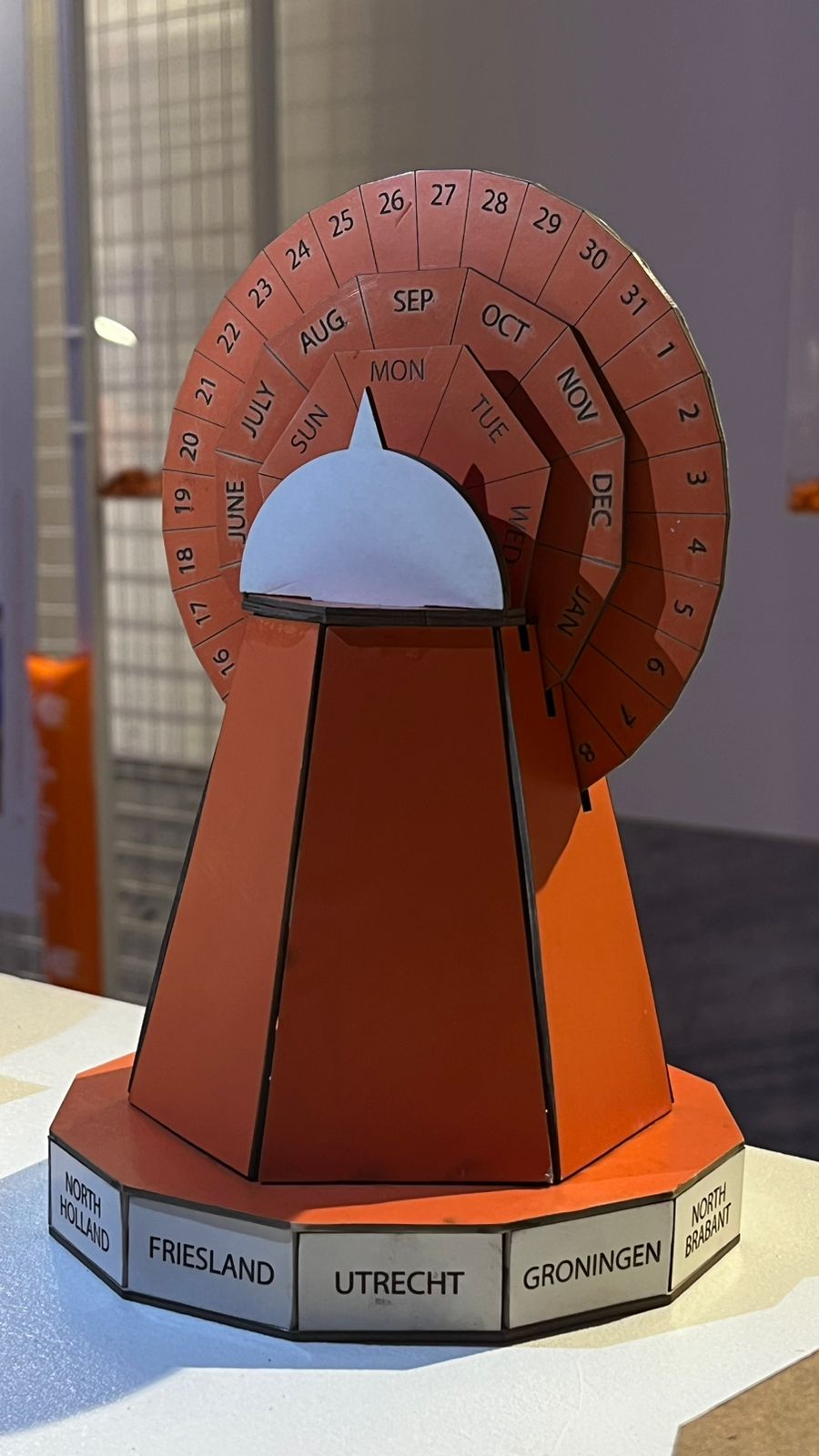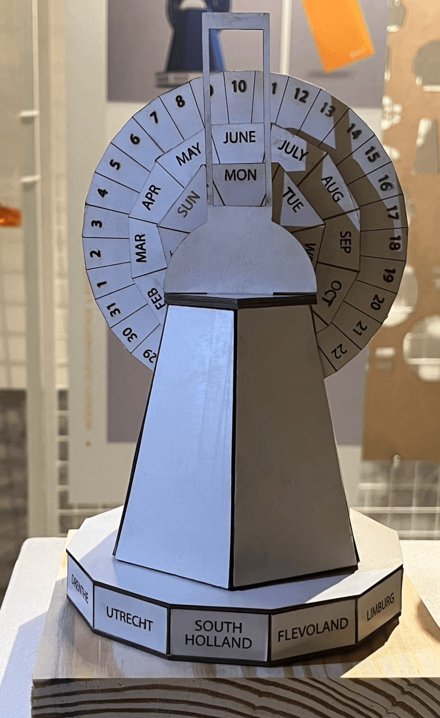 The 12-sided base represents the 12 provinces of the Netherlands, with each side labeled to tell the user about these provinces.