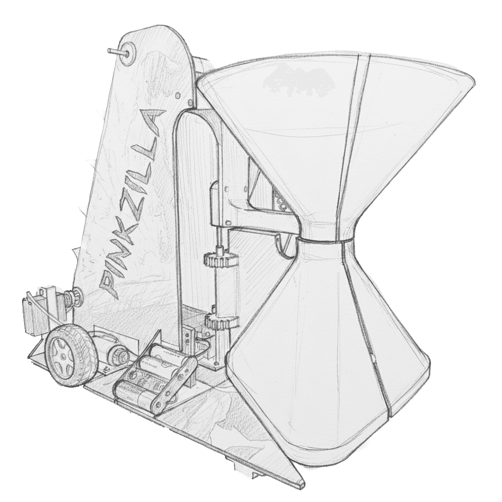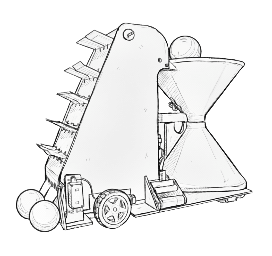 The robot used a conveyor-belt system with flaps, powered by a servo motor, to push balls up a vertical slope. The slope guided each ball to the top of the robot, where it was deposited into a hopper. The hopper featured an opening regulated by a solenoid, controlling the flow of balls onto the pyramid structure below. The pyramid frame temporarily held the balls in place as they were stacked. Once the pyramid was complete, the robot retracted, leaving the structure freestanding. This mechanism allowed precise collection, controlled delivery, and accurate stacking of the balls during the task